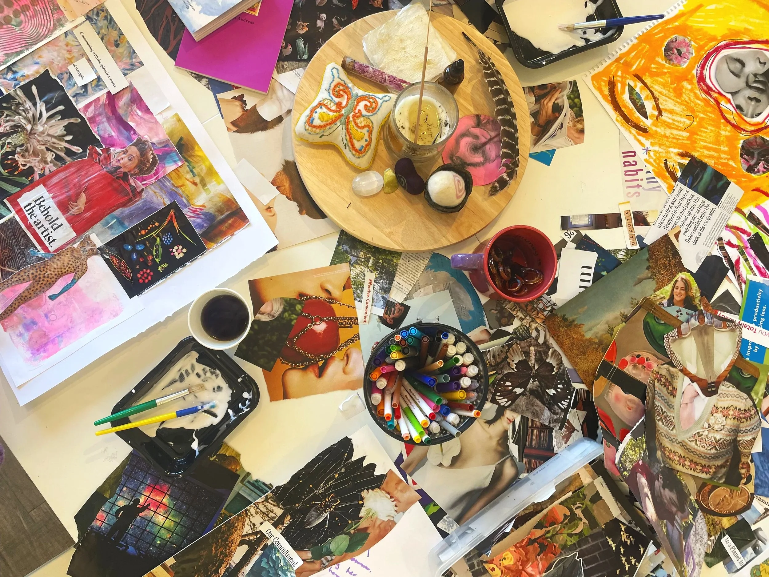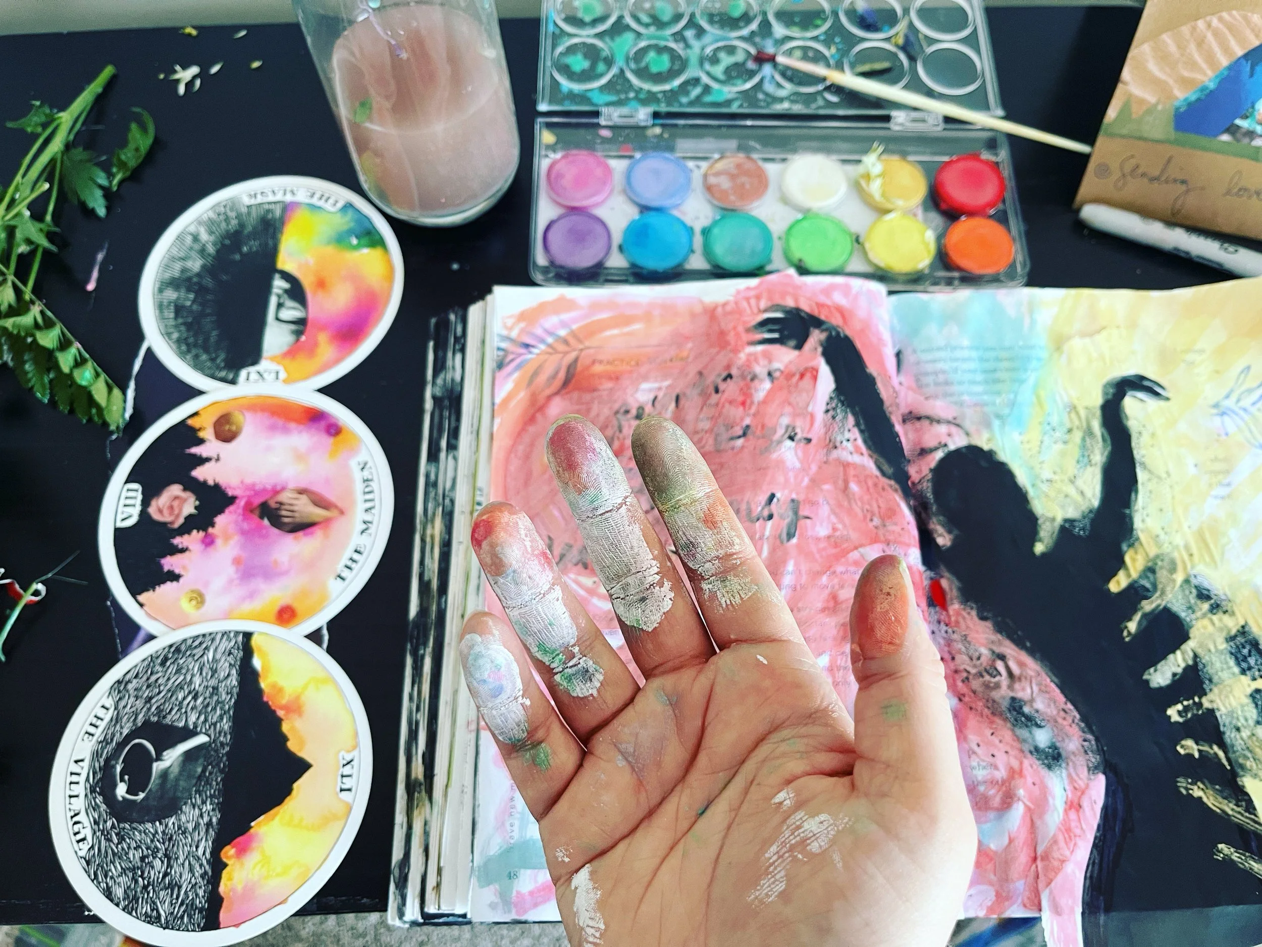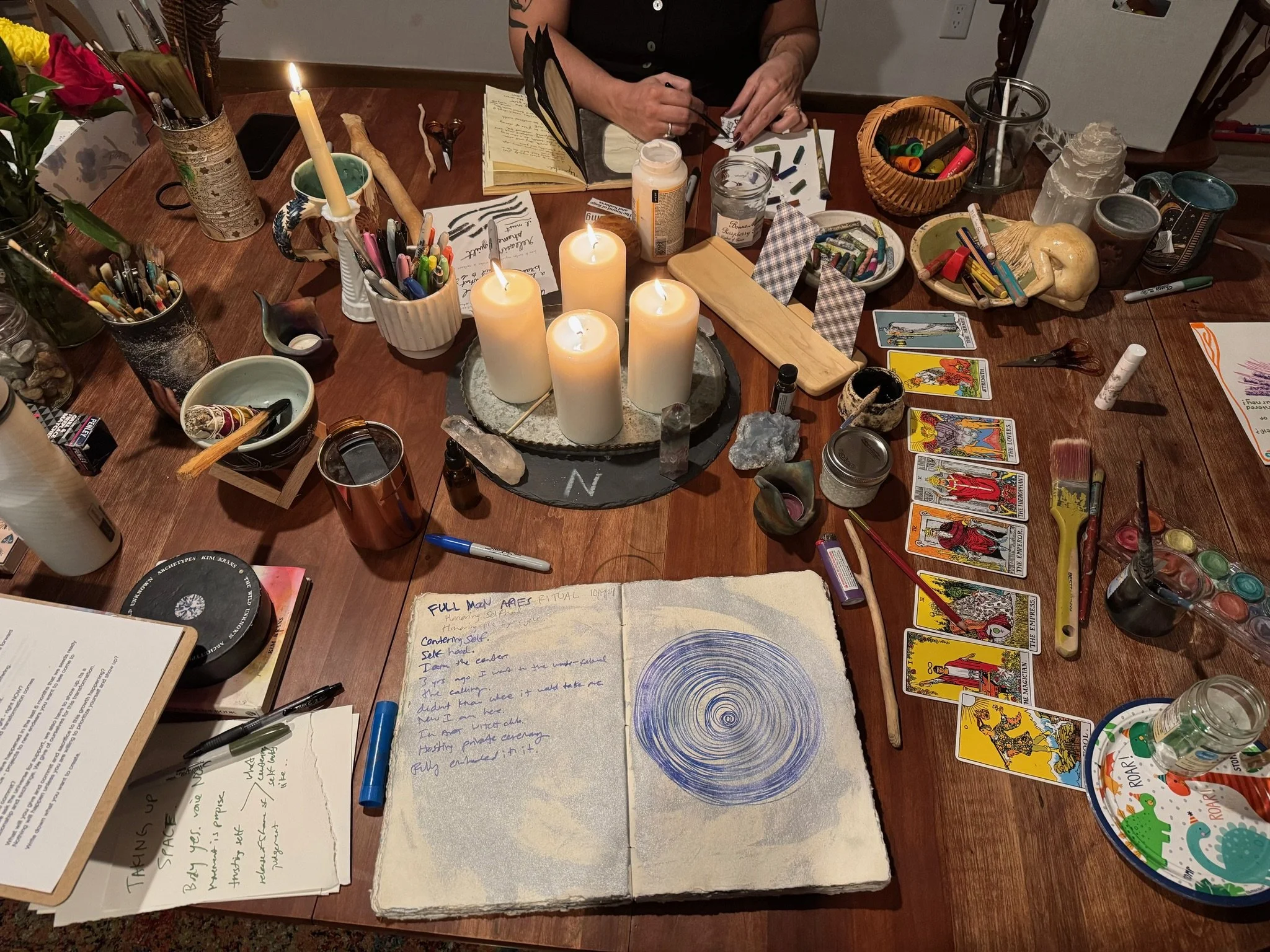 Together, we’ll explore how to build a Creative Check-In structure– a personal practice that helps you stay connected to your personal path through the year ahead. You’ll learn to use intuitive artmaking and mystic tools to track your inner cycles and external themes– weaving art, ritual, and reflection into a rhythm that feels deeply your own.