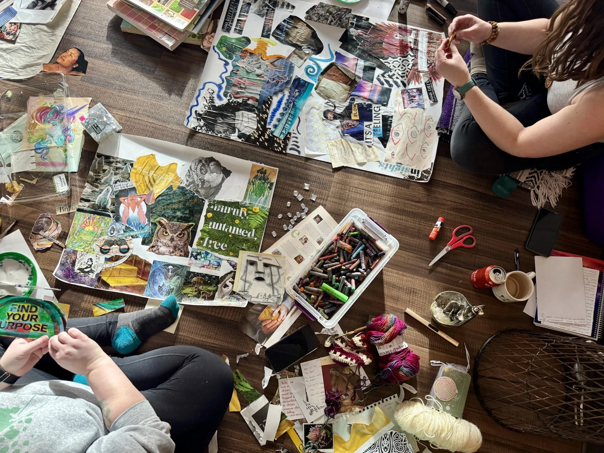 We are two clinically trained art therapists who desire more community, connection, and creation. We have spent years facilitating the healing arts within the time and space constraints of healthcare systems and while doing that work, we witnessed the magic of what art can do. Now, we have created a protocol where we have the time, space, and support to truly lean into the power of what art can provide—and we are sharing it with you through Begin Within.